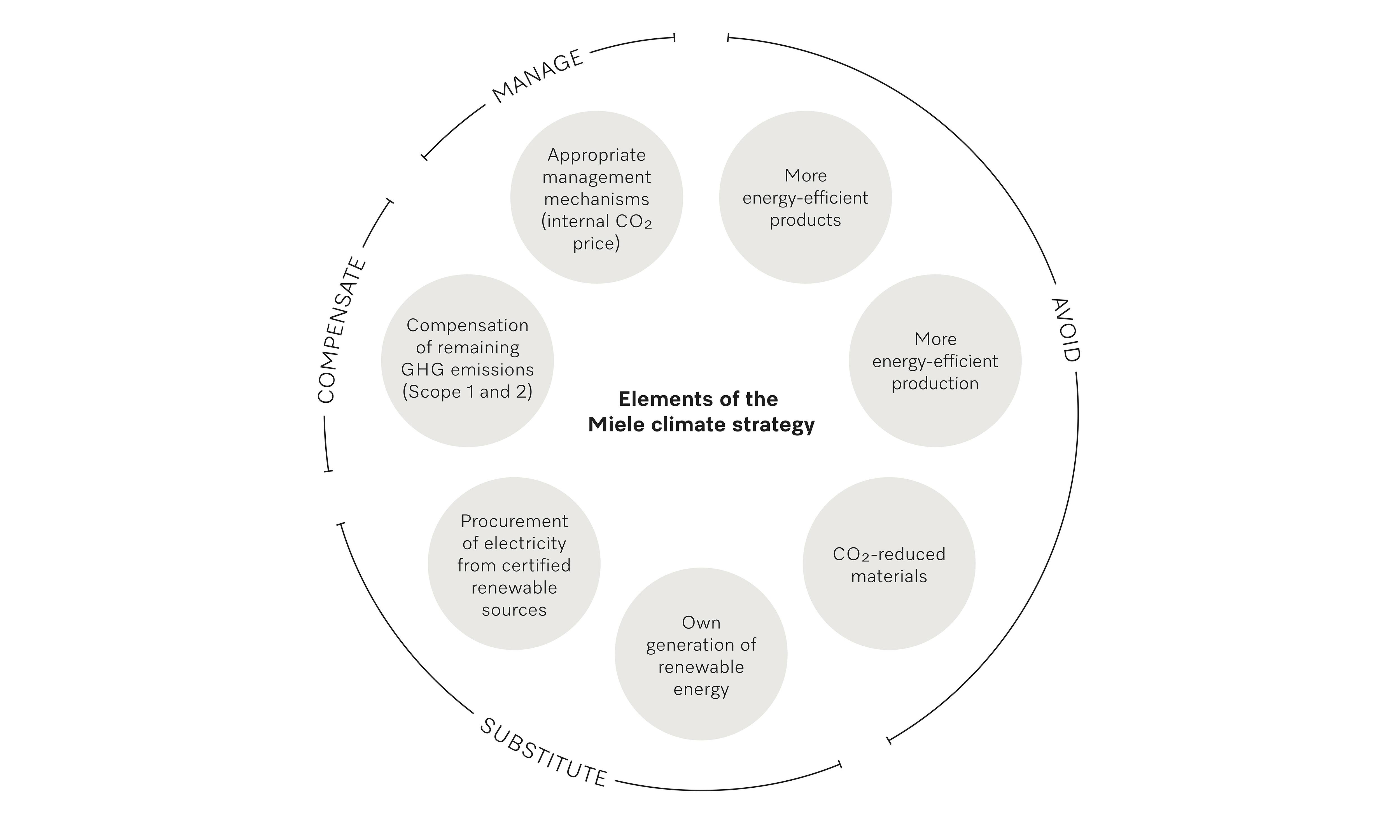 Miele supports the goal of the Paris Climate Agreement to limit global warming by 2100 compared to pre-industrial levels. Our reduction targets follow the guidelines of the Science Based Targets initiative (SBTi), which confirmed our climate strategy as scientifically sound in summer 2021. We have already achieved our previous targets ahead of schedule and are now developing new ones to further strengthen climate protection. To this end, we are preparing a transition plan aligned with the SBTi Net-Zero Standard by 2026, with the aim of achieving GHG neutrality across the entire value chain. At the same time, we are working on long-term climate targets for Miele.
